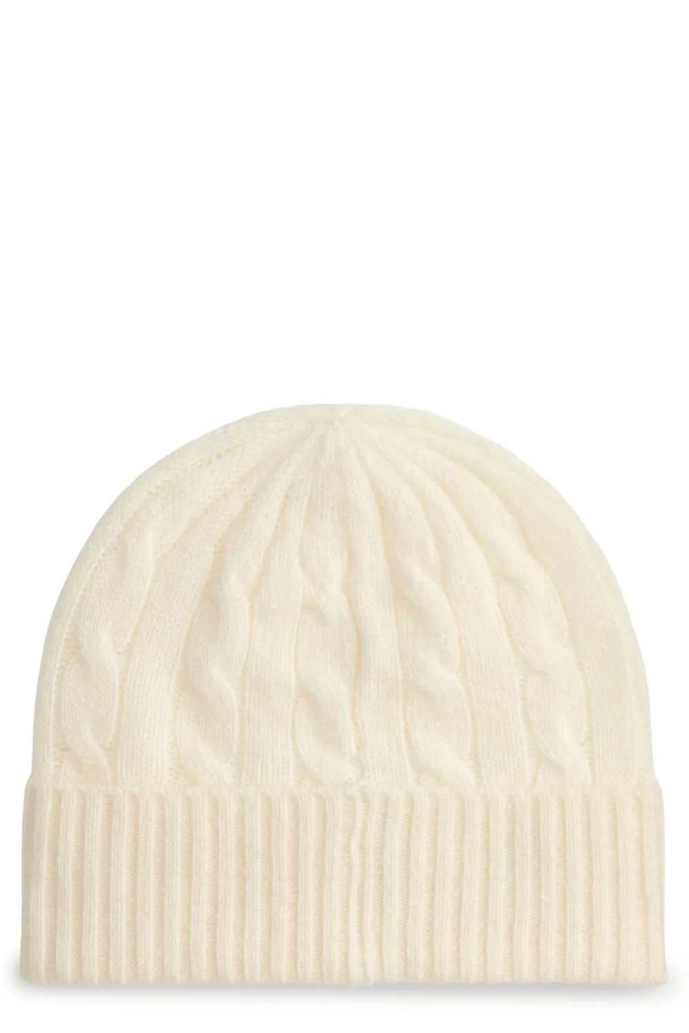 POLO RALPH LAUREN Cappello in lana e cashmere a trecce colore bianco crema con iconcio pony ricaamto lateralmente 90% lana 10% cashmere