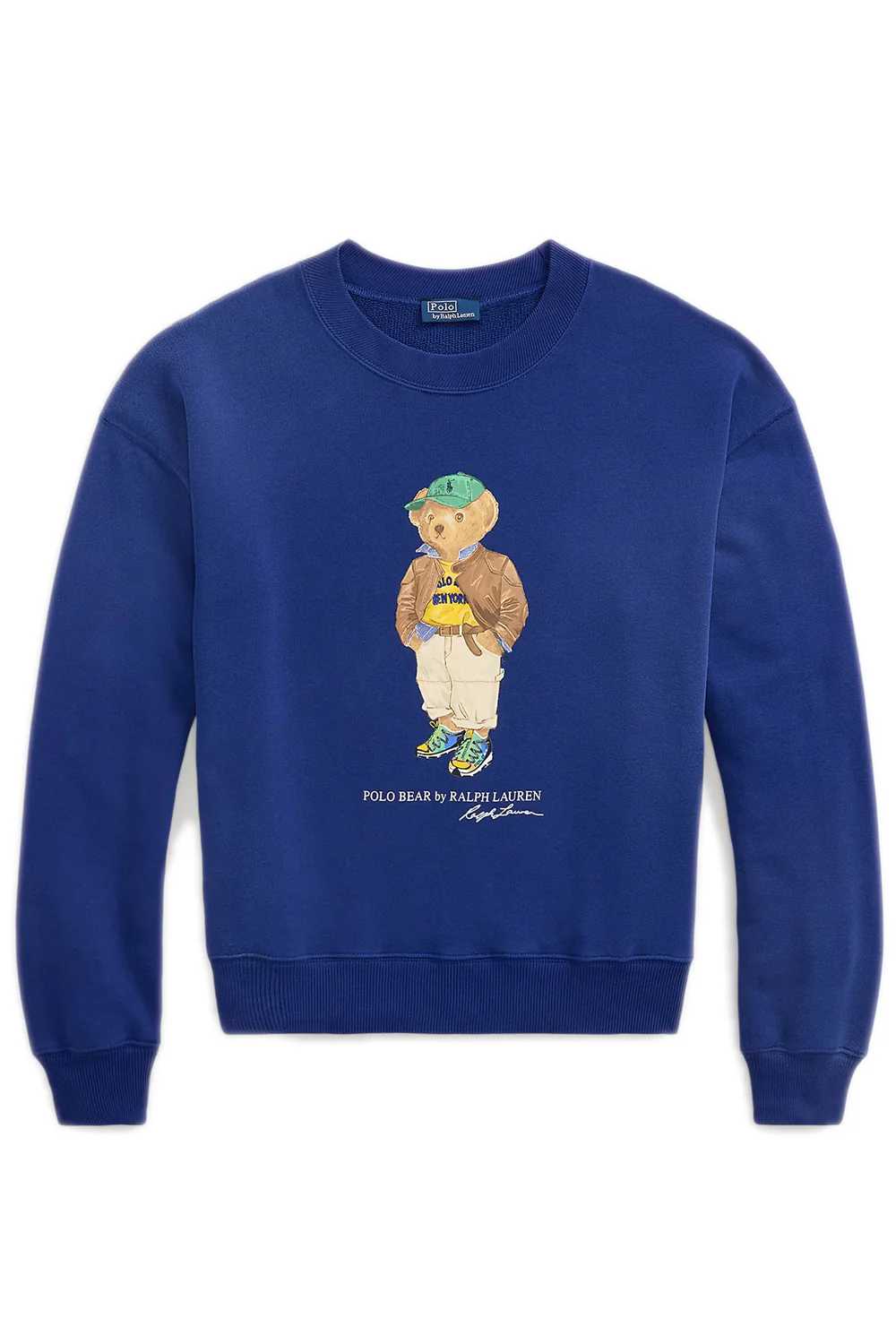 POLO RALPH LAUREN Felpa girocollo in cotone colore blu elettrico con stampa frontale Polo Bear. Maniche lunghe con polsini a coste. Orlo a coste. Corpo: 84% cotone, 16% poliestere.