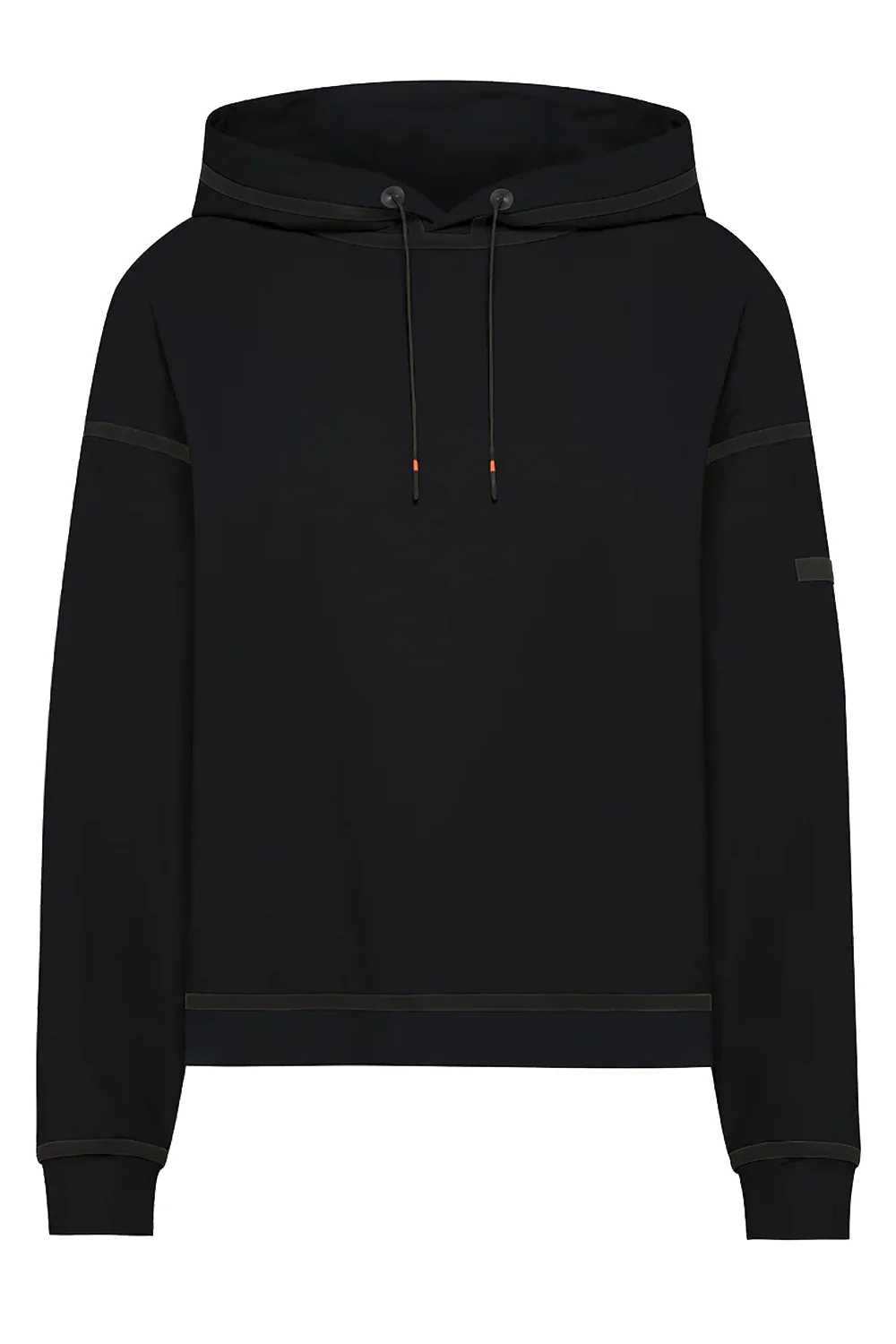 RRD Felpa Surflex Hood colore nero Il modello continuativo di grande successo si conferma un capo smart per vivere il tempo libero con un design dinamico e contemporaneo, pensato per la donna che desidera un equilibrio efficace tra athleisure e funzionalità. Realizzata nell’innovativo tessuto stretch SURFLEX®, fresco e traspirante, garantisce comfort assoluto e totale libertà di movimento. Con la sua texture morbida e il fit rilassato, Surflex Hood Wom Fleece avvolge la silhouette con naturalezza e protegge il capo con il suo ampio cappuccio regolabile tramite coulisse con finalini gommati. Le nastrature a contrasto e il logo nero a microiniezione sulla manica sinistra firmano con un tocco grafico esclusivo la creazione, perfetta per un look dal carattere sporty-chic