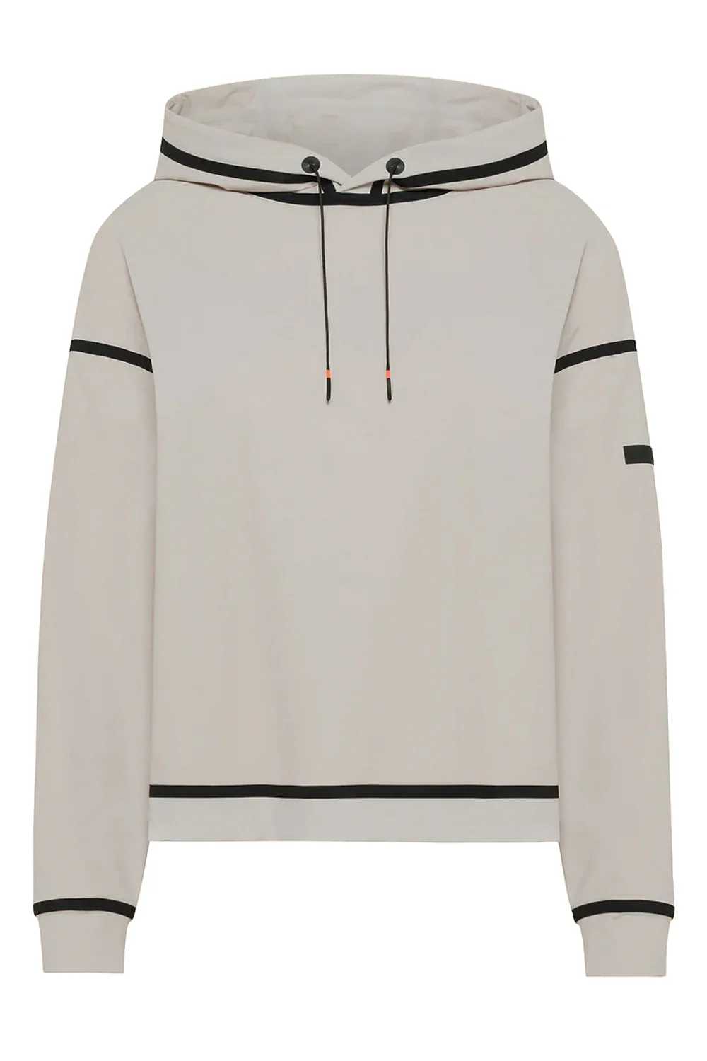 RRD Felpa Surflex Hood colore beige Il modello continuativo di grande successo si conferma un capo smart per vivere il tempo libero con un design dinamico e contemporaneo, pensato per la donna che desidera un equilibrio efficace tra athleisure e funzionalità. Realizzata nell’innovativo tessuto stretch SURFLEX®, fresco e traspirante, garantisce comfort assoluto e totale libertà di movimento. Con la sua texture morbida e il fit rilassato, Surflex Hood Wom Fleece avvolge la silhouette con naturalezza e protegge il capo con il suo ampio cappuccio regolabile tramite coulisse con finalini gommati. Le nastrature a contrasto e il logo nero a microiniezione sulla manica sinistra firmano con un tocco grafico esclusivo la creazione, perfetta per un look dal carattere sporty-chic