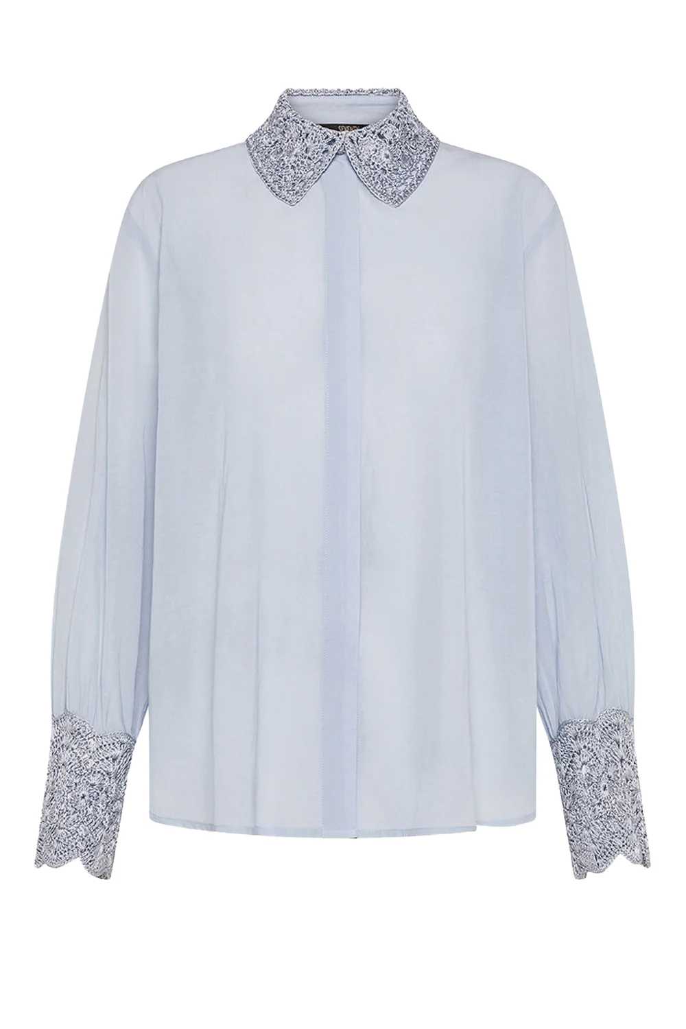 SEVENTY Camicia in cotone colore azzurro con particolari in uncinetto sul colletto e sul fondo delle maniche.