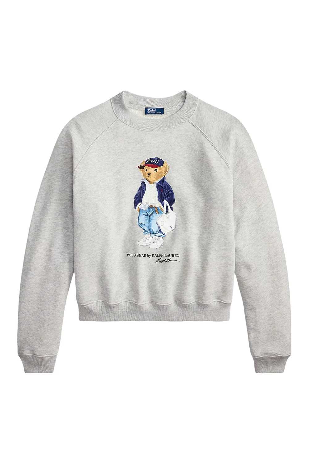 POLO RALPH LAUREN Felpa leggera Polo Bear a girocollo colore grigio. Girocollo. Maniche raglan lunghe con polsini a coste. Orlo a coste. Polo Bear, scritta "Polo Bear by Ralph Lauren" ed esclusivo "Ralph Lauren" stampati in gomma al centro sul davanti. Corpo: 84% cotone, 16% poliestere.