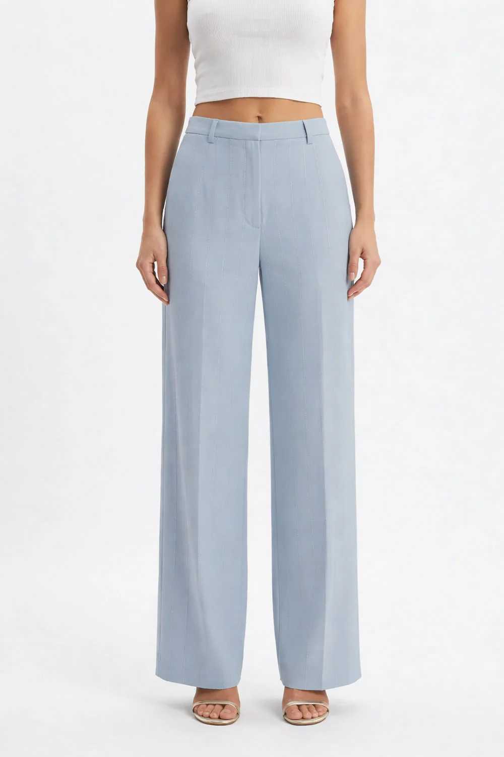 ISABELLE BLANCHE Pantalone taglio sartoriale in cotone colore azzurro. Fondo ampio e bustino con chiusura zip e bottone. 100% Cotone - Fodera 55% PL 45% VI