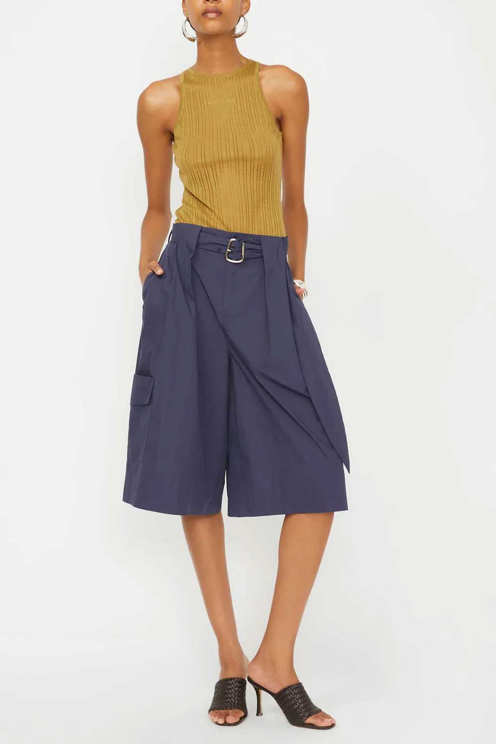 ISABELLE BLANCHE Bermuda con tasche con cintura foulard regolabile colore blue navy La modella indossa la taglia S-40 italiana ed è alta 180 cm 65% COTONE 35% POLIAMMIDE FODERA 100% COTONE