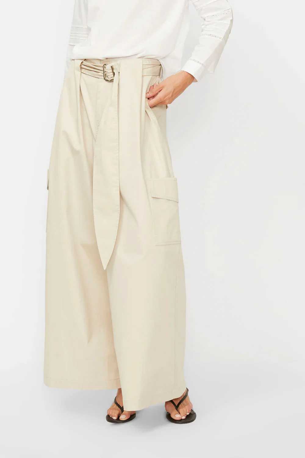 ISABELLE BLANCHE Pantalone in gabardina di cotone cargo colore ivory con cintura foulard La modella indossa la taglia S-40 italiana ed è alta 178 cm 100% COTONE FODERA 100% COTONE