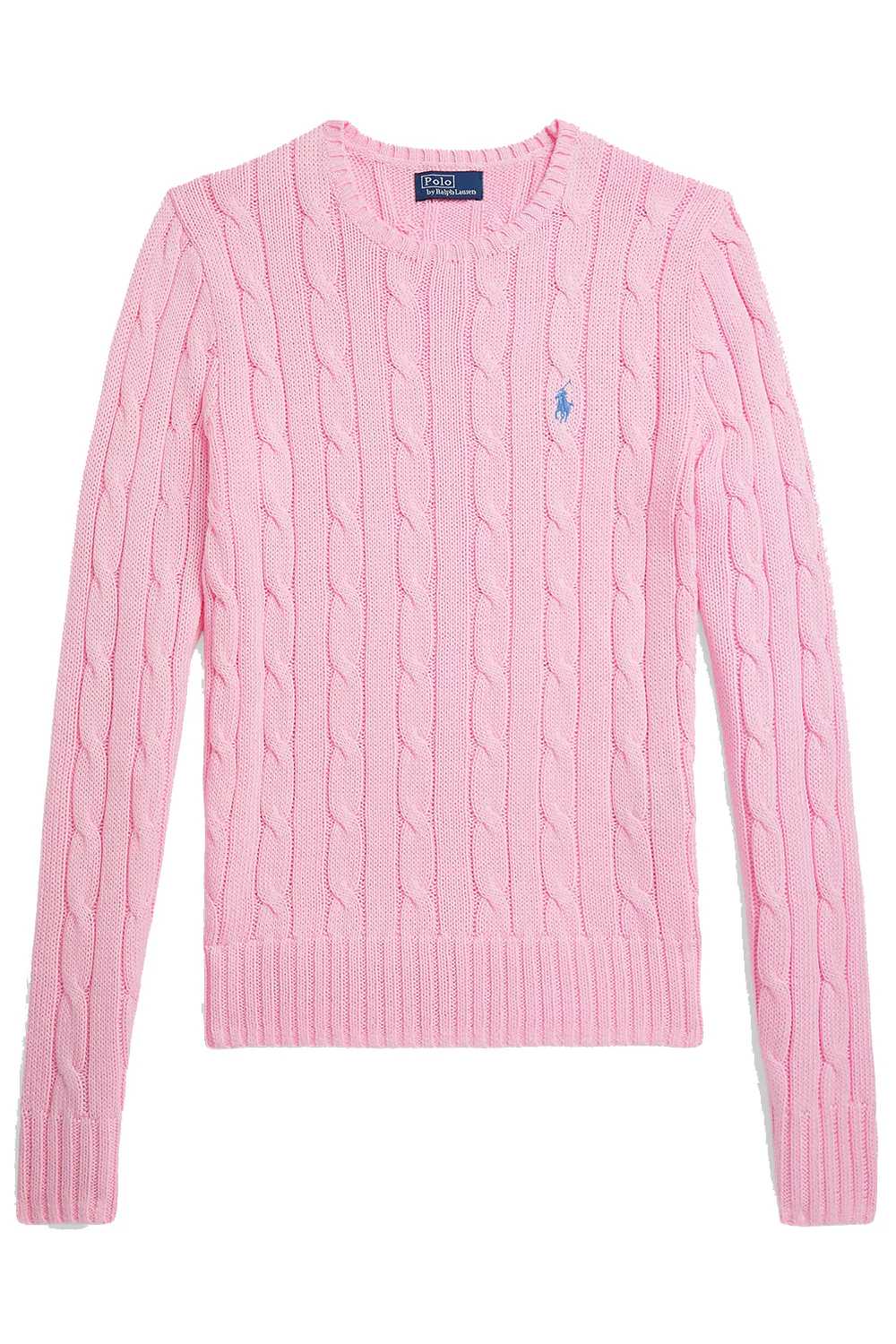 POLO RALPH LAUREN Maglia a girocollo in cotone a trecce colore rosa con esclusivo pony ricamato sul torace La taglia M ha una lunghezza di 58 cm e maniche di 63 cm. La lunghezza del capo e delle maniche è misurata a partire dal punto più alto della spalla. La lunghezza della manica varia di 1,5 cm in base alla taglia.
